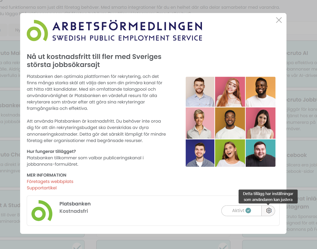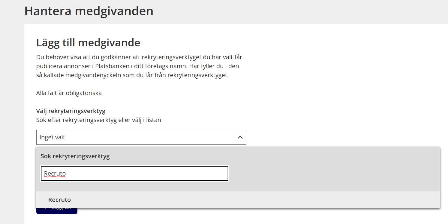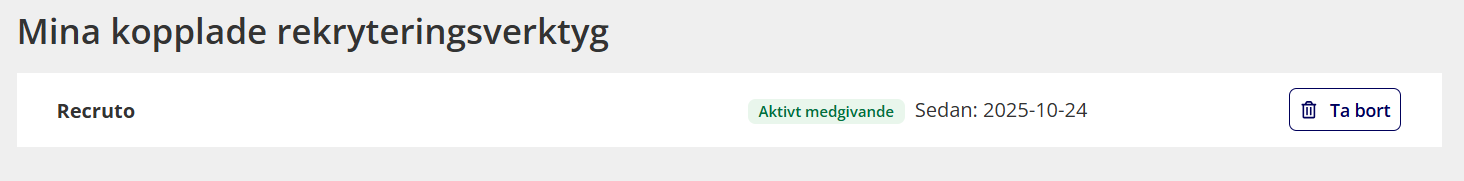 - Du ska nu kunna se kopplingen under Mina kopplade rekryteringsverktyg (se bild nedan).