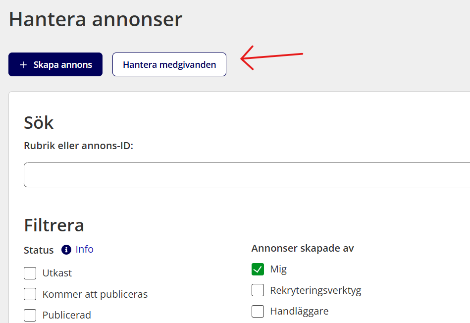 - Gå till Mina sidor och klicka på Annonsera i Platsbanken.